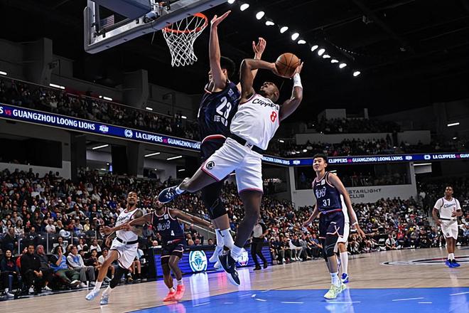 广州龙狮VS洛杉矶快船,陈国豪13分,刘颜诚三分球5中4